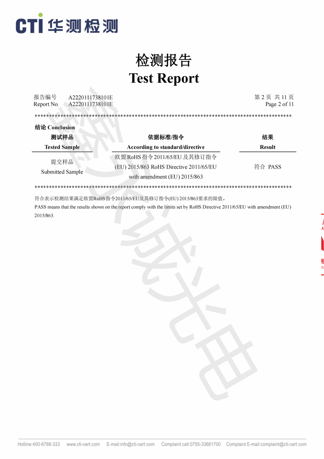 确保产品的设计和制造符合RoHS 2011/65 / EU;